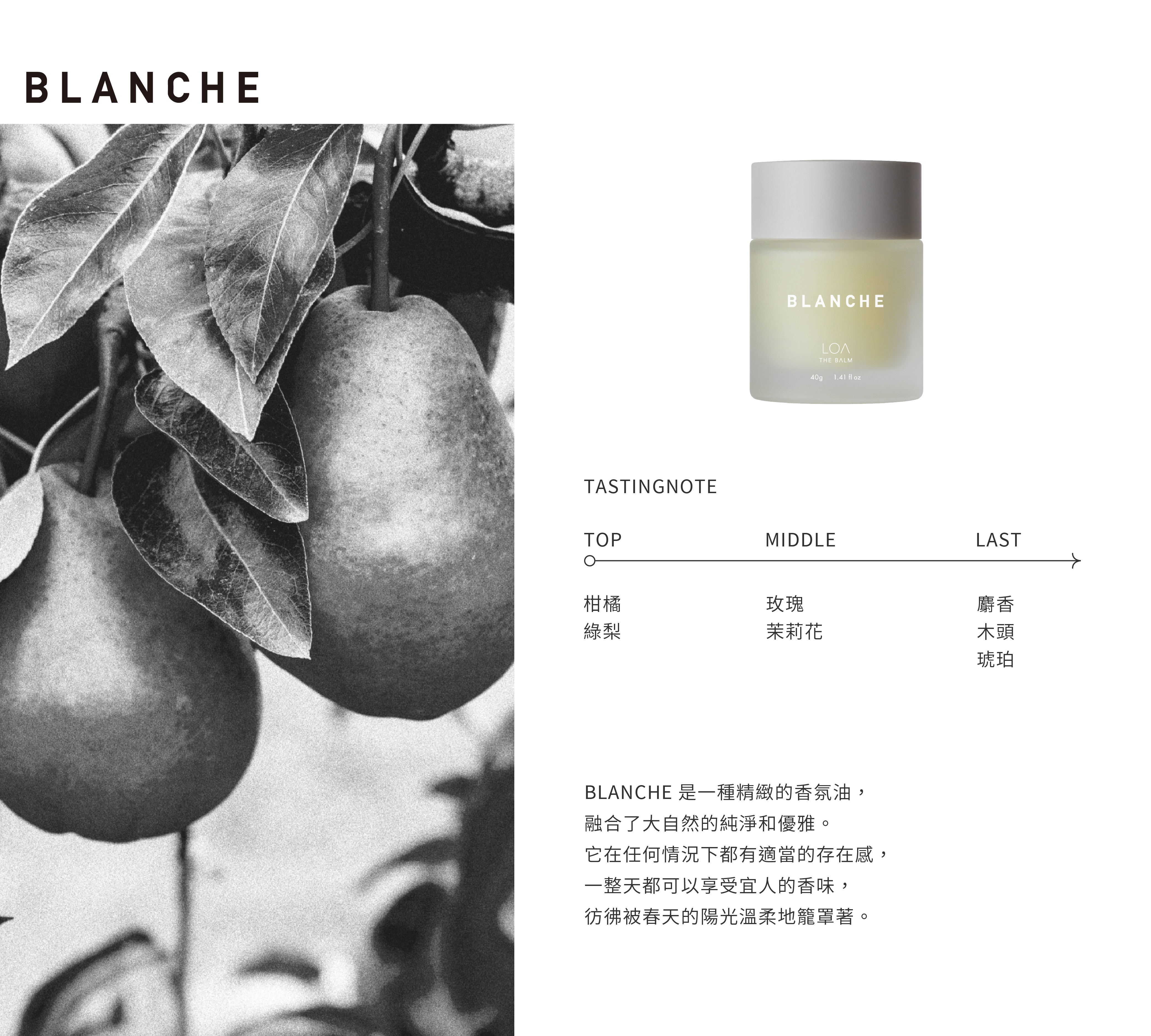 BLANCHE 是一種精緻的香氛油,融合了大自然的純淨和優雅。